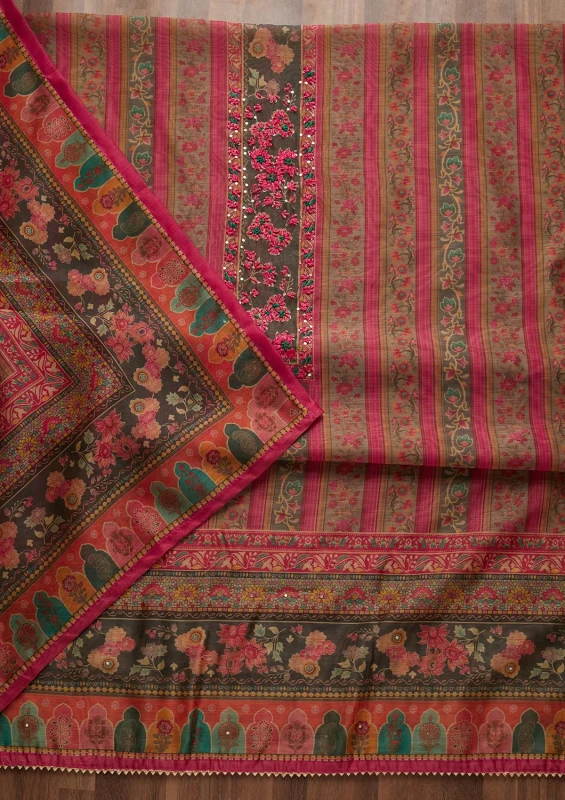 Pink Threadwork Chanderi Unstitched Salwar Suit