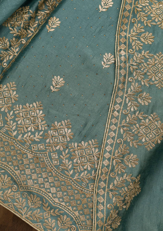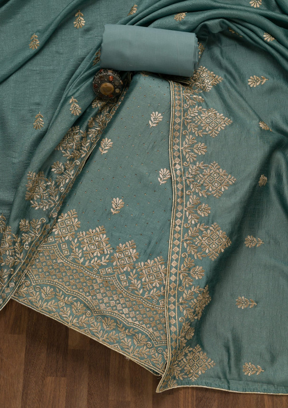 Light Grey Zariwork Art Silk Unstitched Salwar Suit
