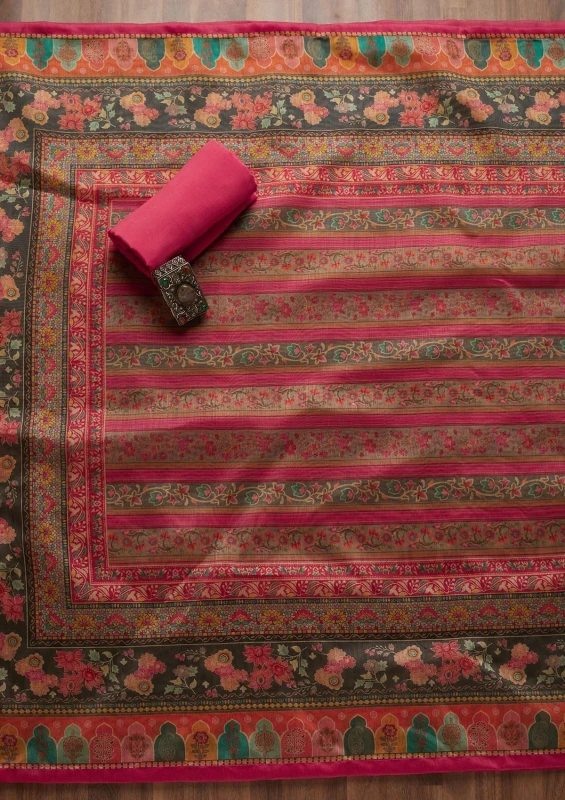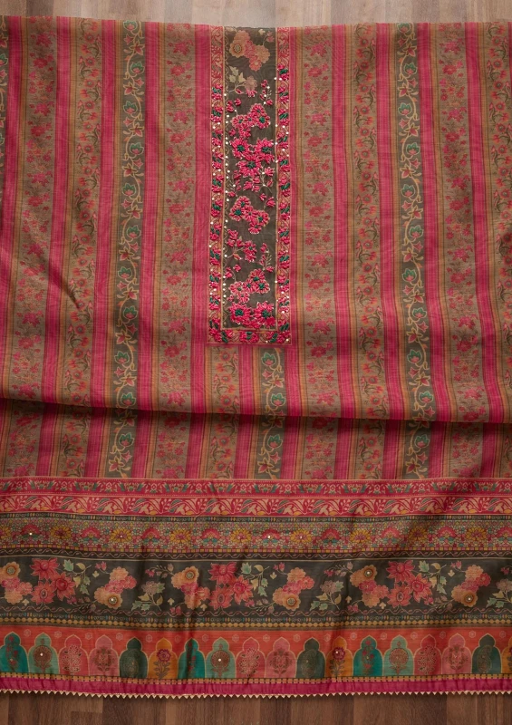 Pink Threadwork Chanderi Unstitched Salwar Suit